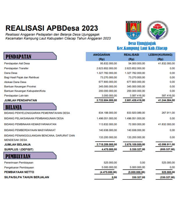Infografis APBDes Tahun Anggaran 2023 Desa Ujunggagak